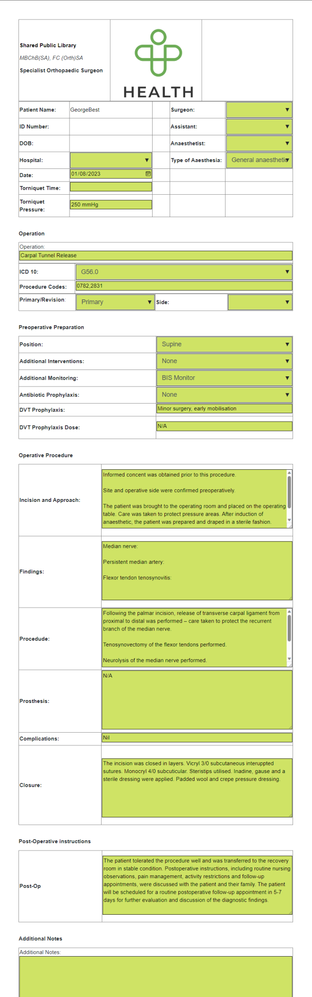 Operation Notes from configured Form
