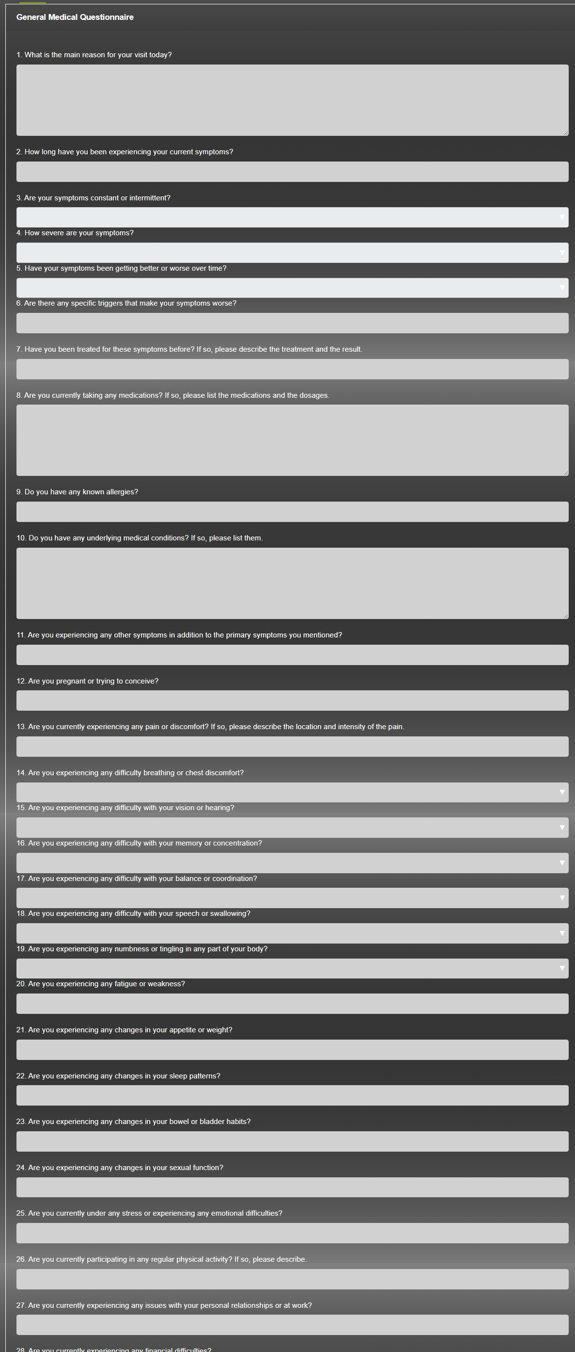 Alchemed has a powerful form builder and library of forms that allow you to create your patient questionnaires digitally. These are then filled in by the patient online well in advance of consultation dramatically reducing the time needed for a consultation and also giving the clinician ample time to review patient information before a consultation begins.
