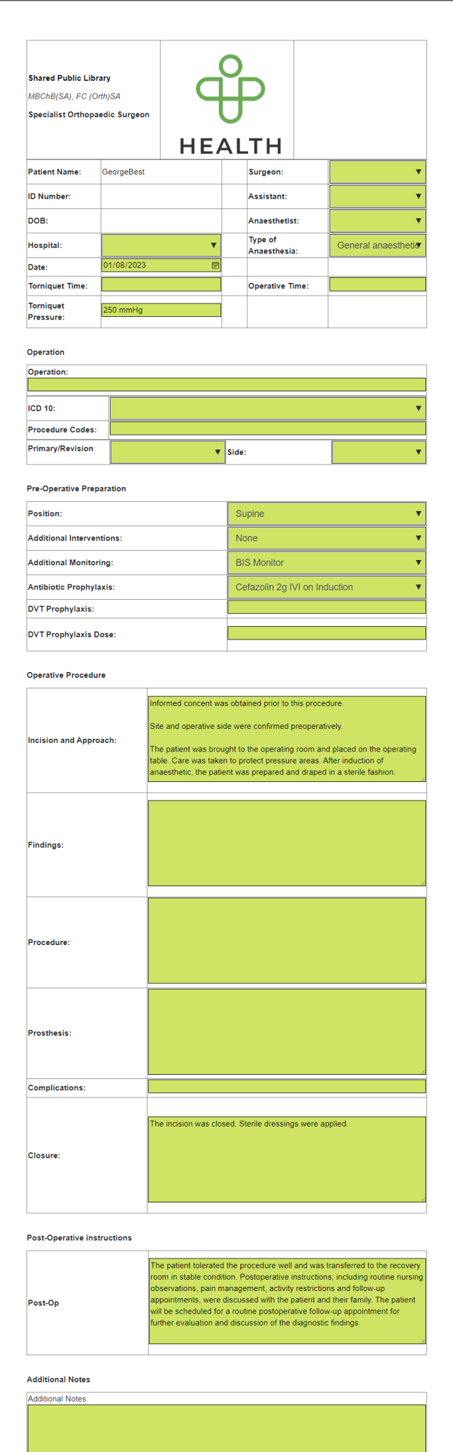 In Alchemed you can configure operation booking and completion forms with defaults populated. These forms then generate your operation documents based on the selections you make.